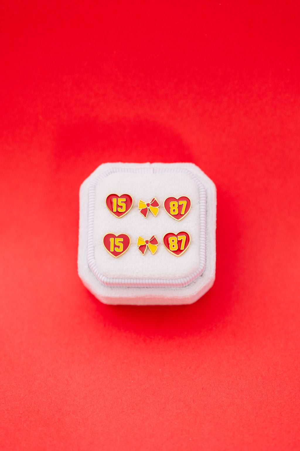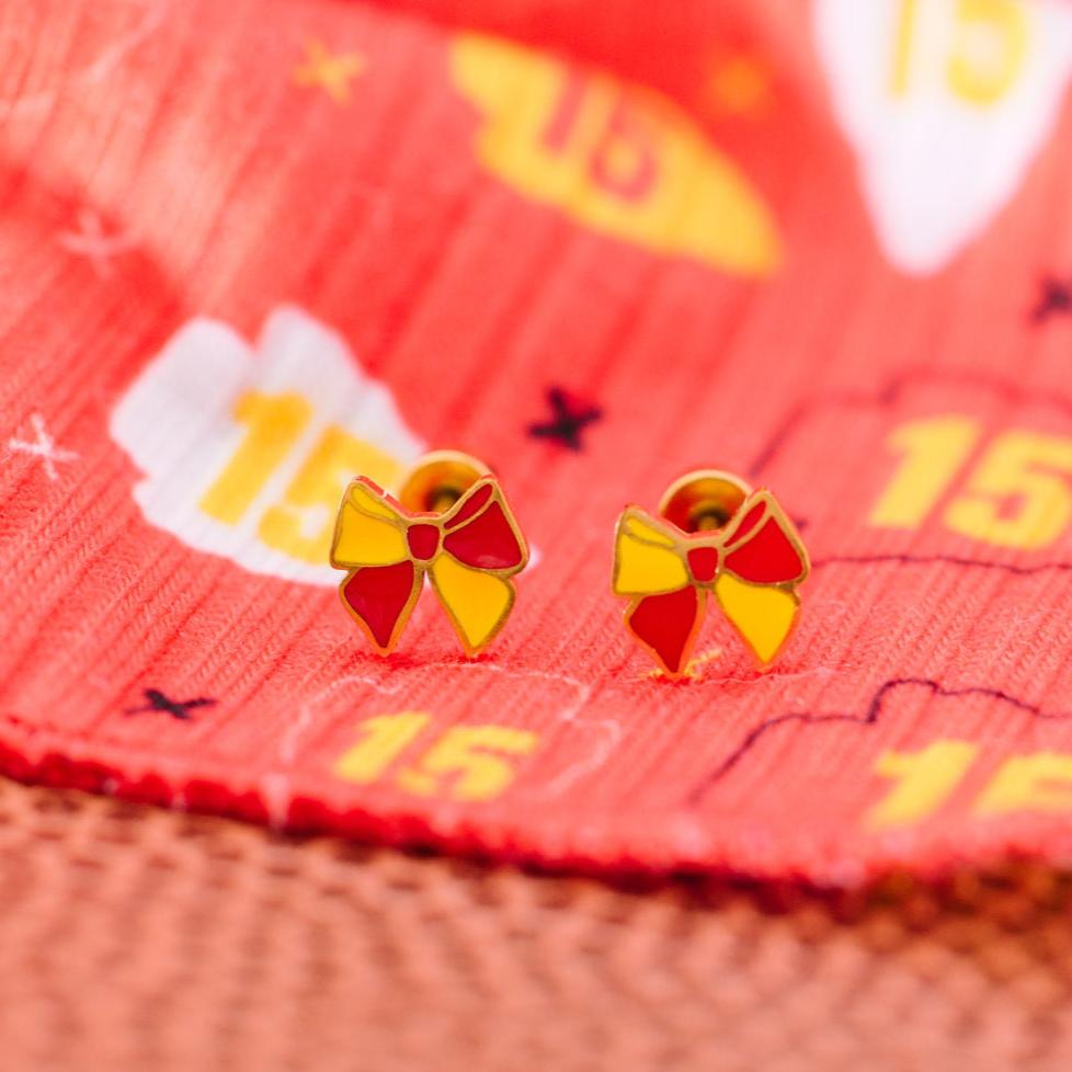 Cheer for your favorite team with these team spirit colored bow studs!