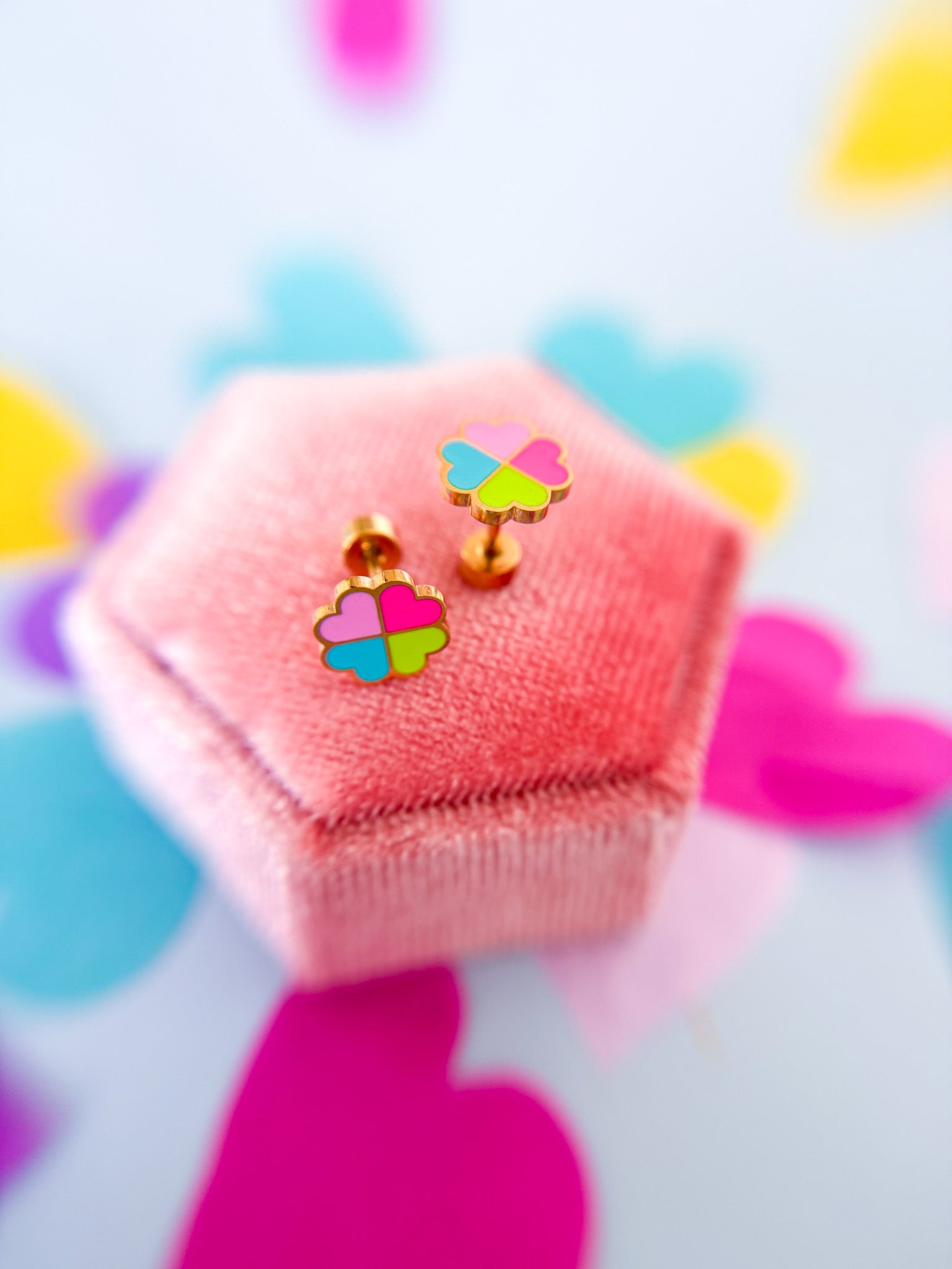 Our flat screw-on backs provide a secure, comfortable fit, ensuring your earrings stay in place during play, swimming, or even while you sleep. Bonus: Because we know tiny things can get lost, we have included an extra set of backs with every pair of earrings you order!