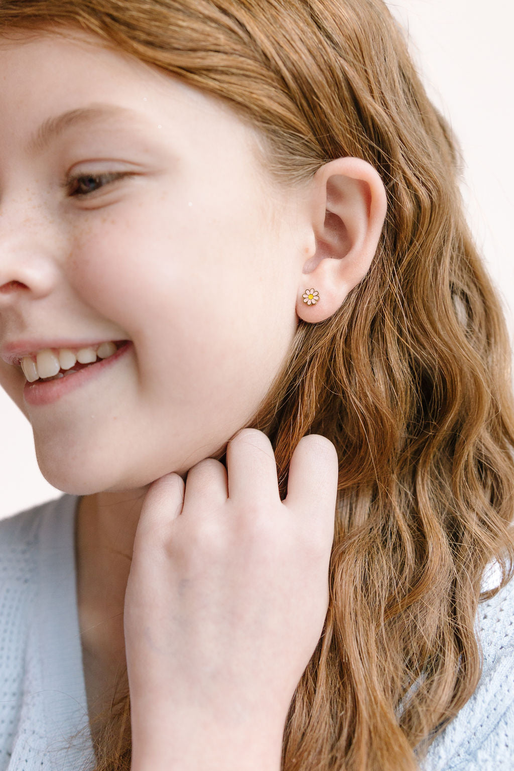Our flat screw-on backs provide a secure, comfortable fit, ensuring your earrings stay in place during play, swimming, or even while you sleep. Bonus: Because we know tiny things can get lost, we have included an extra set of backs with every pair of earrings you order!