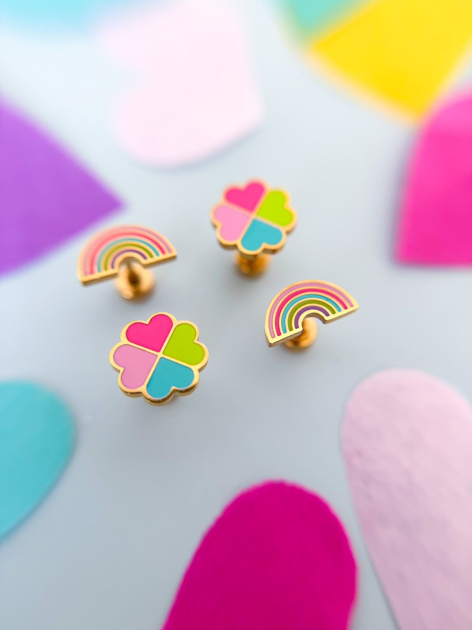 Our flat screw-on backs provide a secure, comfortable fit, ensuring your earrings stay in place during play, swimming, or even while you sleep. Bonus: Because we know tiny things can get lost, we have included an extra set of backs with every pair of earrings you order!